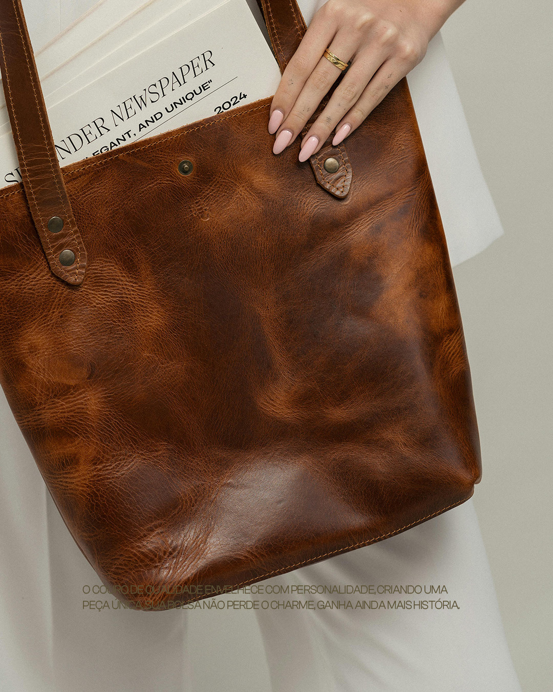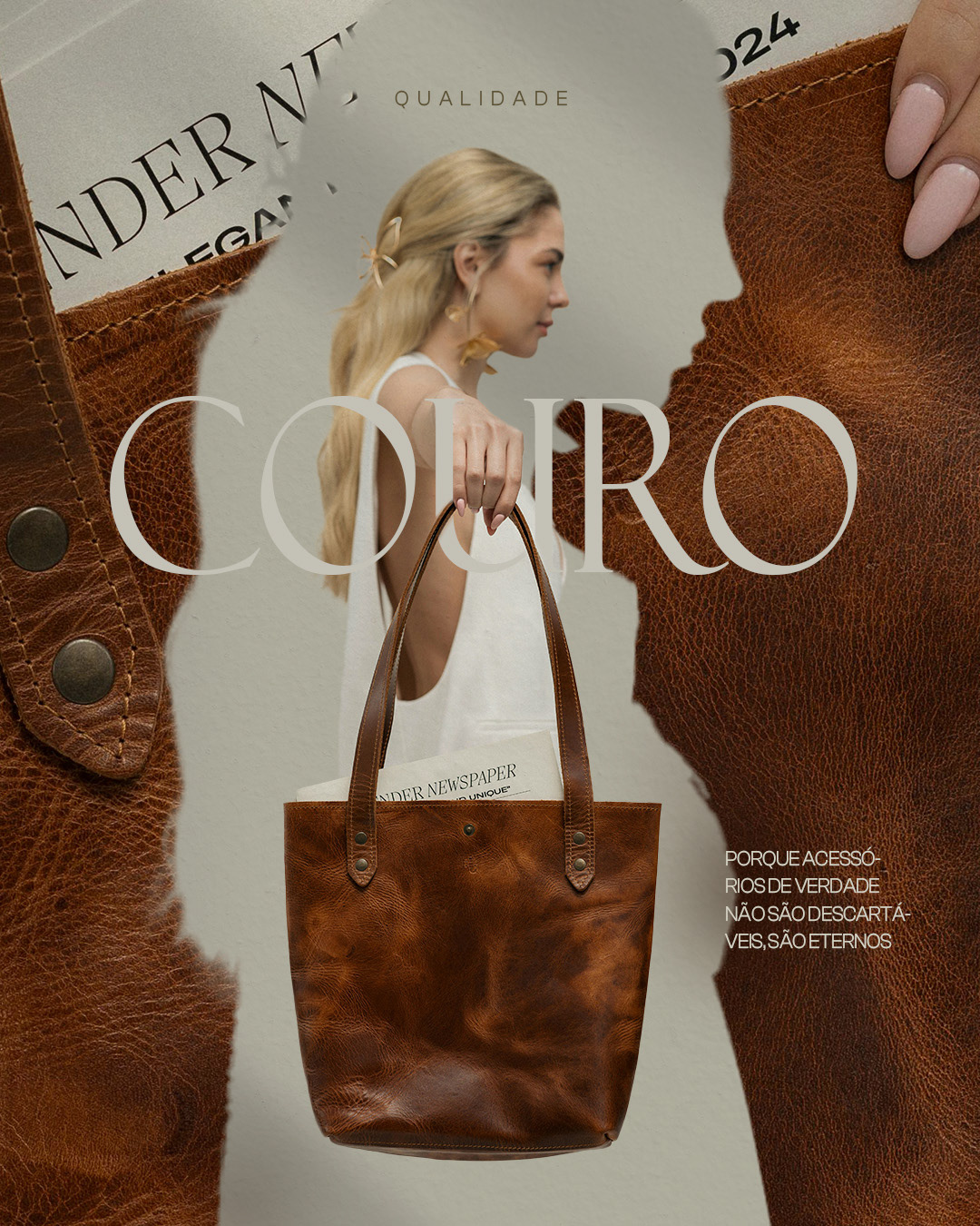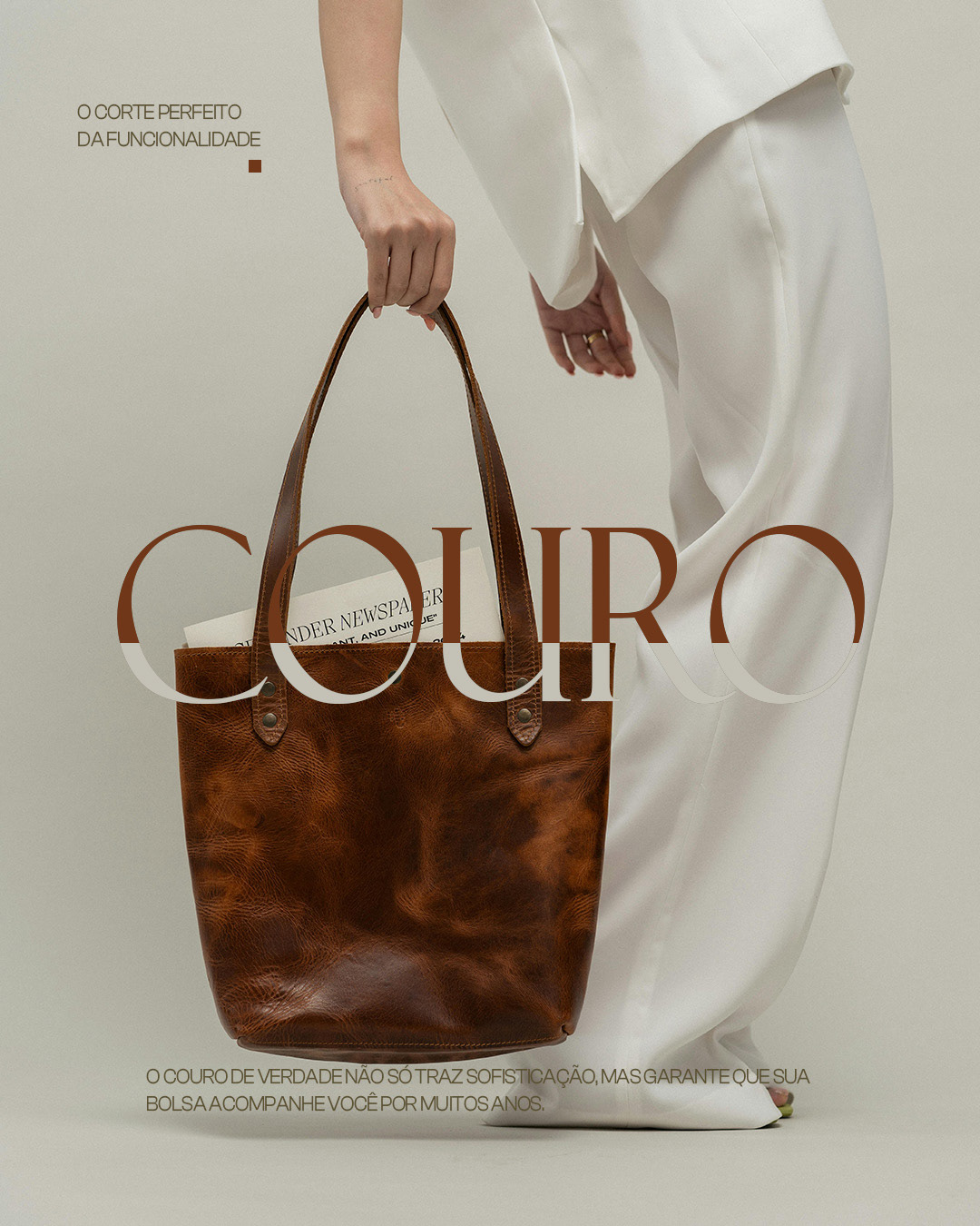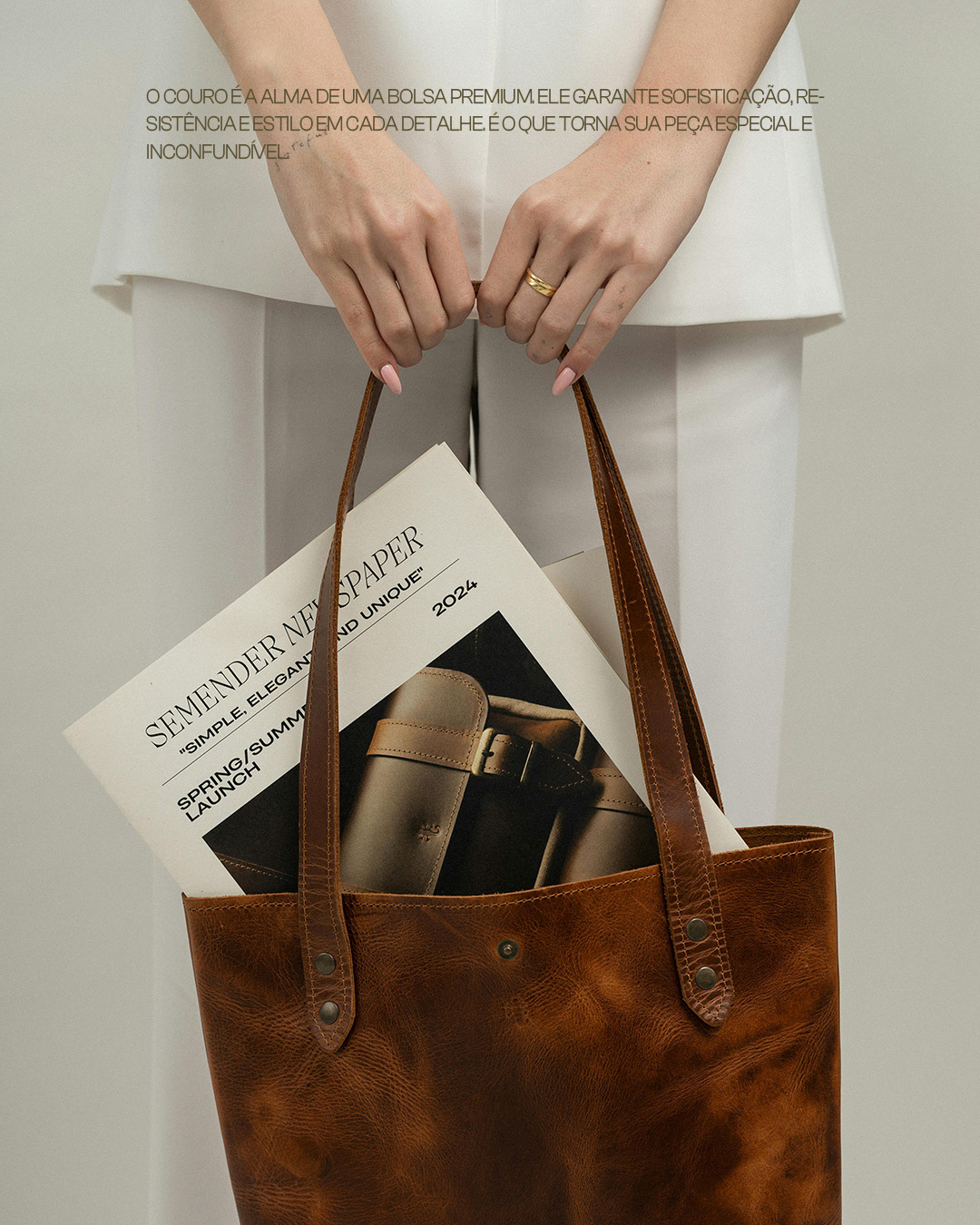 couro legítimo, design minimalista, bolsas premium, moda atemporal, branding clean, identidade visual, arte de produto, textura de couro, design sofisticado, bolsas de couro, elegância sustentável, lifestyle premium.